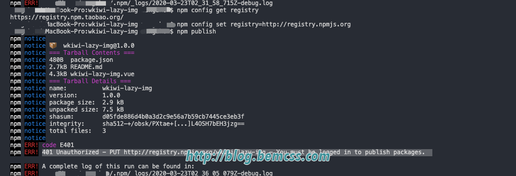 401错误 因为账号是才注册的,忘记邮箱验证,根据提示地址验证邮箱,再次发布,此时进入npm官网,发现自己的包管理多了一个刚才发布的npm包